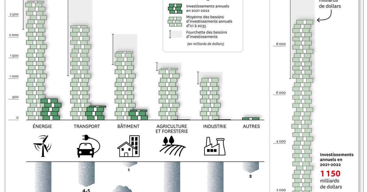 Le rapport indique que *“les études disponibles sur les investissements nécessaires pour atteindre la neutralité carbone indiquent que, globalement, les investissements annuels doivent être multipliés par au moins six par rapport aux niveaux actuels pour atteindre les 6,7 à 11,7 milliers de milliards d’euros nécessaires d’ici à 2035.”* Bien que cela semble décourageant, il est crucial de noter que la majorité de ces fonds peut être redistribuée à partir des capitaux déjà existants.