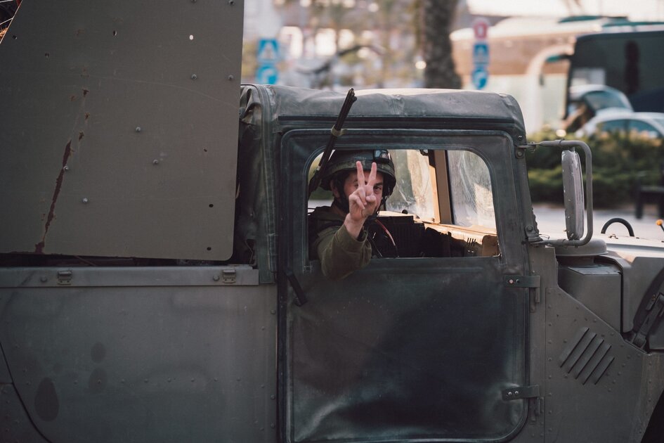 Le spectacle des habitants locaux préparant avec enthousiasme de la viande sur des barbecues industriels, sur la place principale de la ville, pour accueillir des réservistes israéliens marque une pause bienvenue. Ces derniers, tout juste de retour après cinq jours passés dans la bande de Gaza, profitent de ces moments pour échanger avec leurs familles et se détendre. Malgré le contexte de guerre, le rire et la camaraderie dominent parmi les soldats et les enfants qui dansent sur une version hébraïque de la chanson "C’est la Vie".