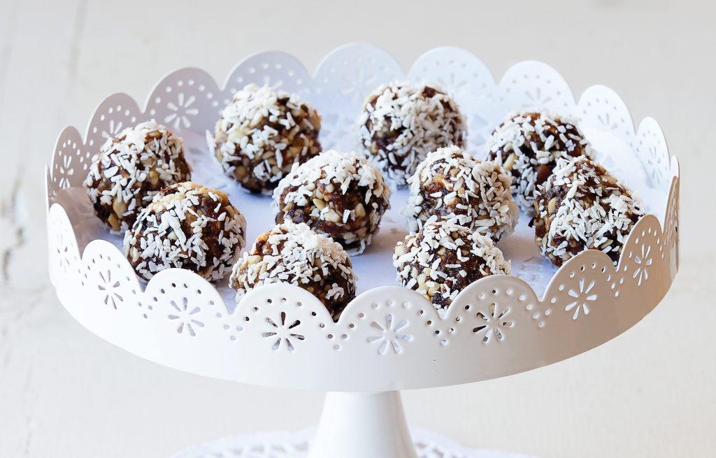 3. Roulez les billes dans la noix de coco et placez-les au réfrigérateur pendant 2 heures ou toute la nuit.
