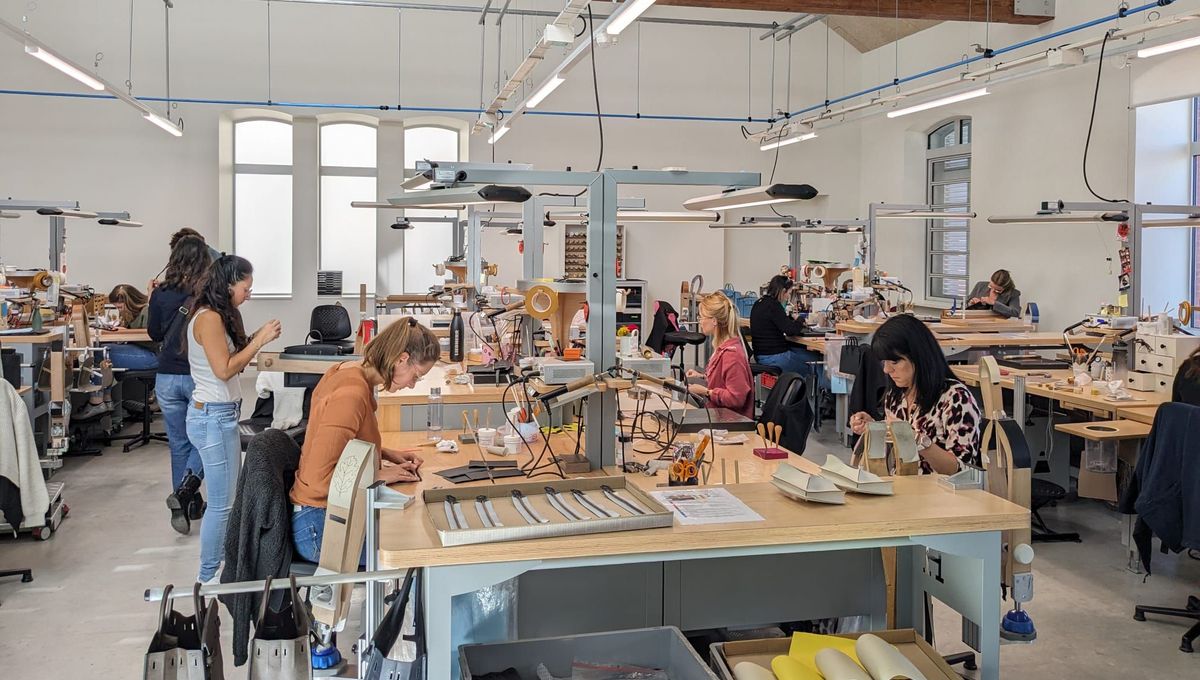 Actuellement, 200 personnes travaillent dans ces nouveaux ateliers, dont 90 % sont issues d’une reconversion professionnelle. Dans l’atelier de formation, 36 artisans bénéficient d’une formation intense de dix-huit mois, comme Xavier, 44 ans, ancien tuyauteur-soudeur, qui partage son expérience : « C’est vraiment gratifiant, c’est d’arriver à une pièce classe et estimée dans le monde de la maroquinerie et tout ça avec nos petites mains. »