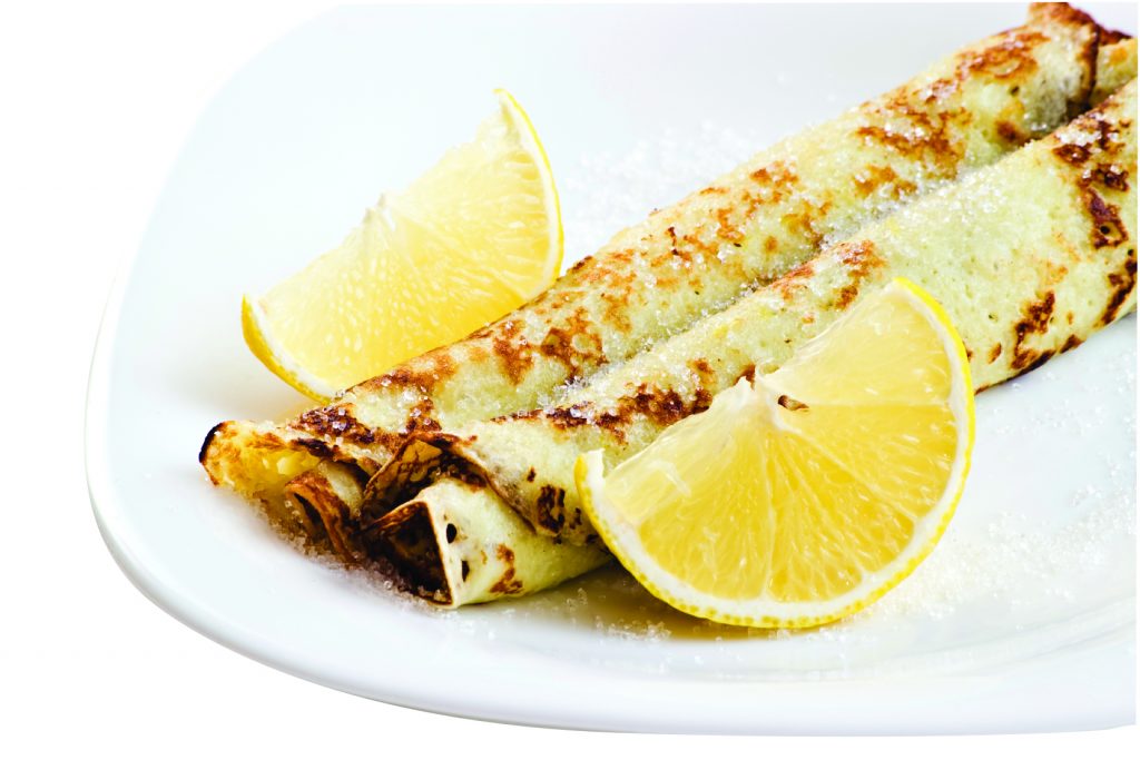 - Vaporisez légèrement une poêle antiadhésive avec de l’huile et placez-la sur feu moyen. Versez suffisamment de pâte pour couvrir le fond. Cuisez jusqu’à ce que la pâte prenne. Retournez la crêpe pour cuire l’autre côté. Répétez le processus pour réaliser 4 à 6 crêpes.