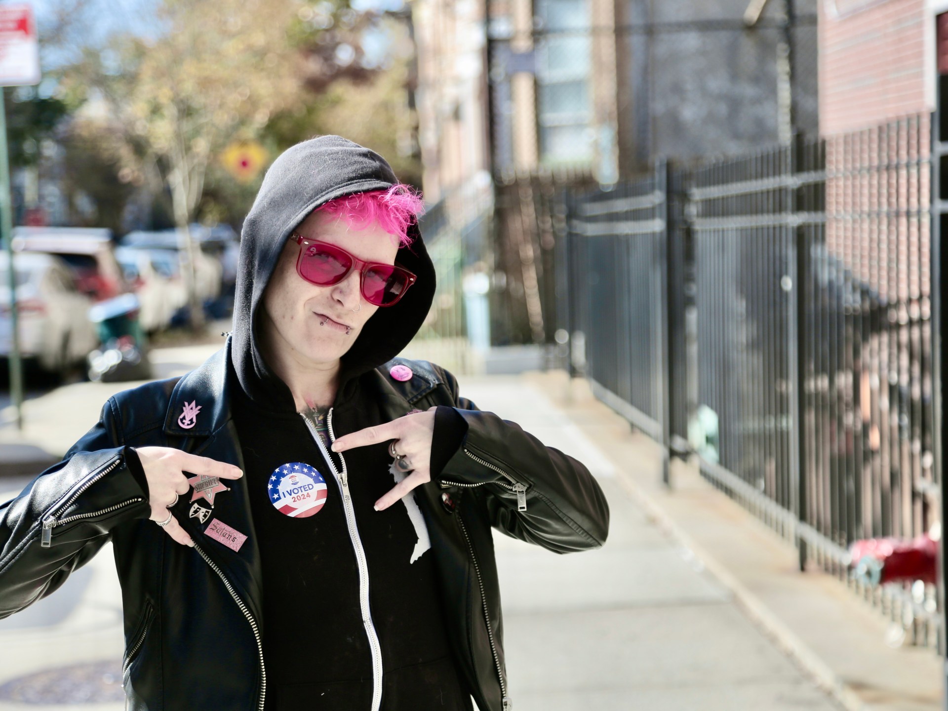 Affichant des cheveux roses assortis à des lunettes de soleil roses, Kuss a ajouté que la perspective d’une nouvelle présidence Trump la terrifiait.