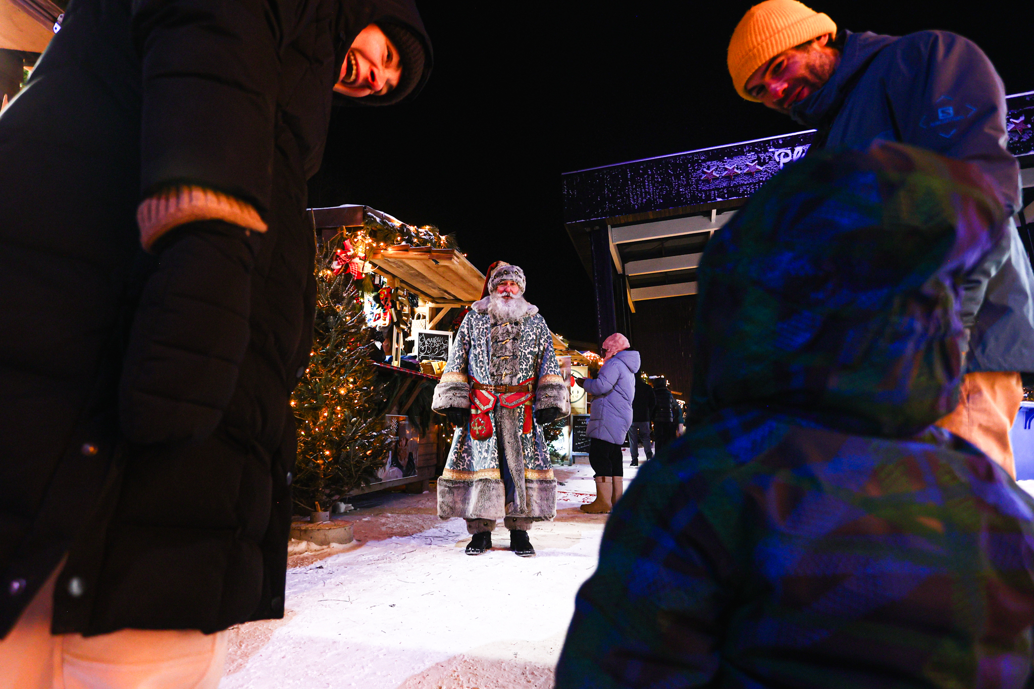 La vraie vedette de la soirée n’était pas le grand sapin ou les décorations lumineuses, mais le grand foyer central qui restait vivant grâce à une braise généreuse. Même le Père Noël, vêtu de son costume et prêt à accueillir les idées de cadeaux des enfants, ne pouvait pas rivaliser avec la chaleur du feu. Le public cherchait surtout à se réchauffer et à profiter de l’ambiance conviviale malgré le froid.