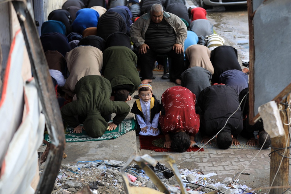 Des vidéos partagées par des militants ont montré les habitants du camp de Jabalia, au nord de Gaza, priant en plein air sous la pluie, bravant les obstacles imposés par les attaques israéliennes.