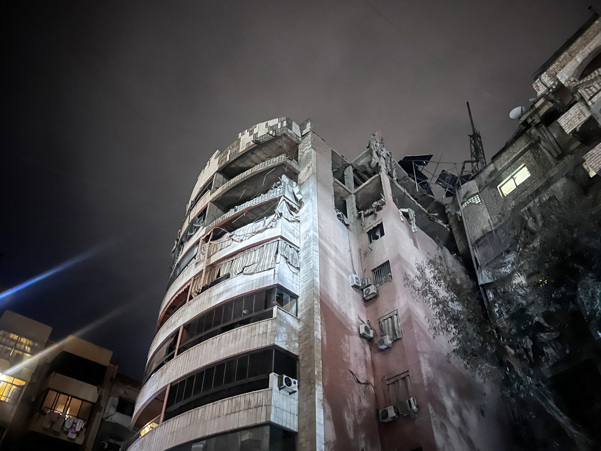 Des vidéos de l’après-bombardement ont montré des panaches de fumée s’élevant au-dessus de Dahiyeh, ainsi que des dommages aux trois derniers étages d’un immeuble d’habitation, avec des débris recouvrant des voitures en dessous.