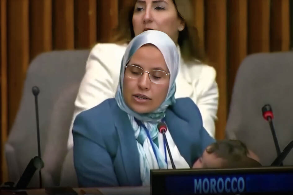 Une vidéo montre la parlementaire marocaine Fatima Zoukag tenant son bébé endormi tout en prononçant un discours aux Nations Unies, un événement rare dans de telles enceintes internationales.
