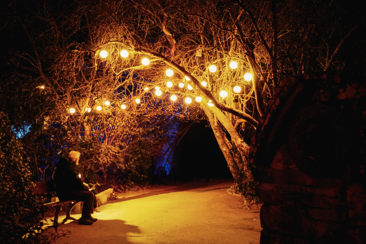 Le parcours commence devant les chaos de l’Aven, où les jeux de lumière créent des reflets surprenants dans les remous de la rivière. Il suit ensuite la promenade Xavier-Grall vers l’îlot de Rosmadec, et la rue du Port jusqu’au Moulin du Grand Poulguin est également illuminée. Les arbres et les façades se parent de couleurs, habillant les espaces nocturnes et donnant vie à une atmosphère artistique.