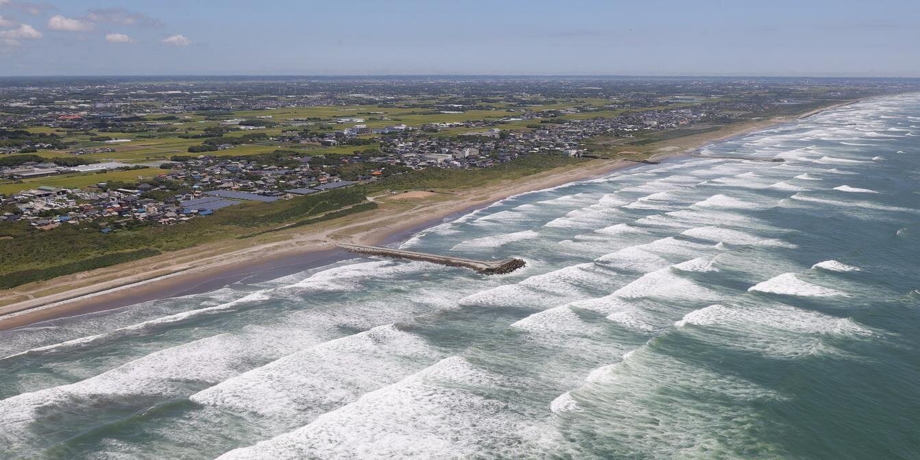 La plage de Kujukuri, sur la côte nord-est de la péninsule de Boso, dans la préfecture de Chiba, Japon.
