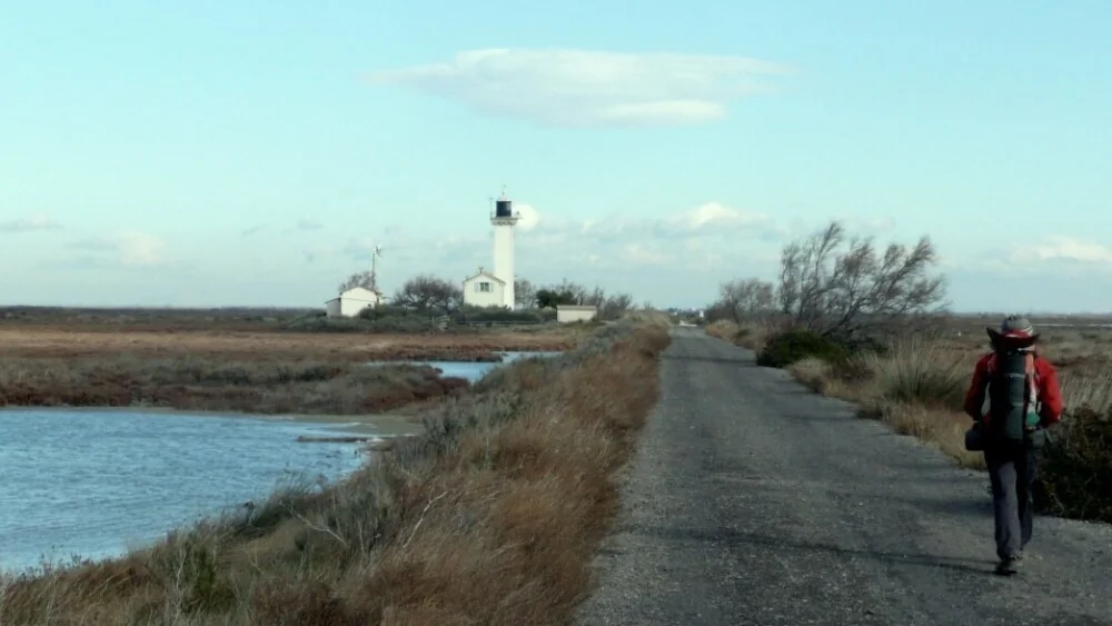 Le chemin de pèlerinage passe par la digue.