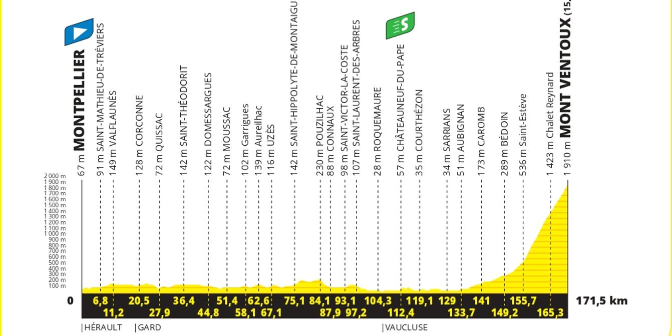 Les coureurs partiront de Montpellier pour parcourir 171,5 kilomètres jusqu’au célèbre mont Ventoux, situé dans le département du Vaucluse. Le départ sera donné à 12 h 40, et durant près de 150 kilomètres, le peloton traversera les plaines héraultaise et gardoise avant d’atteindre le parc naturel régional du Vaucluse.