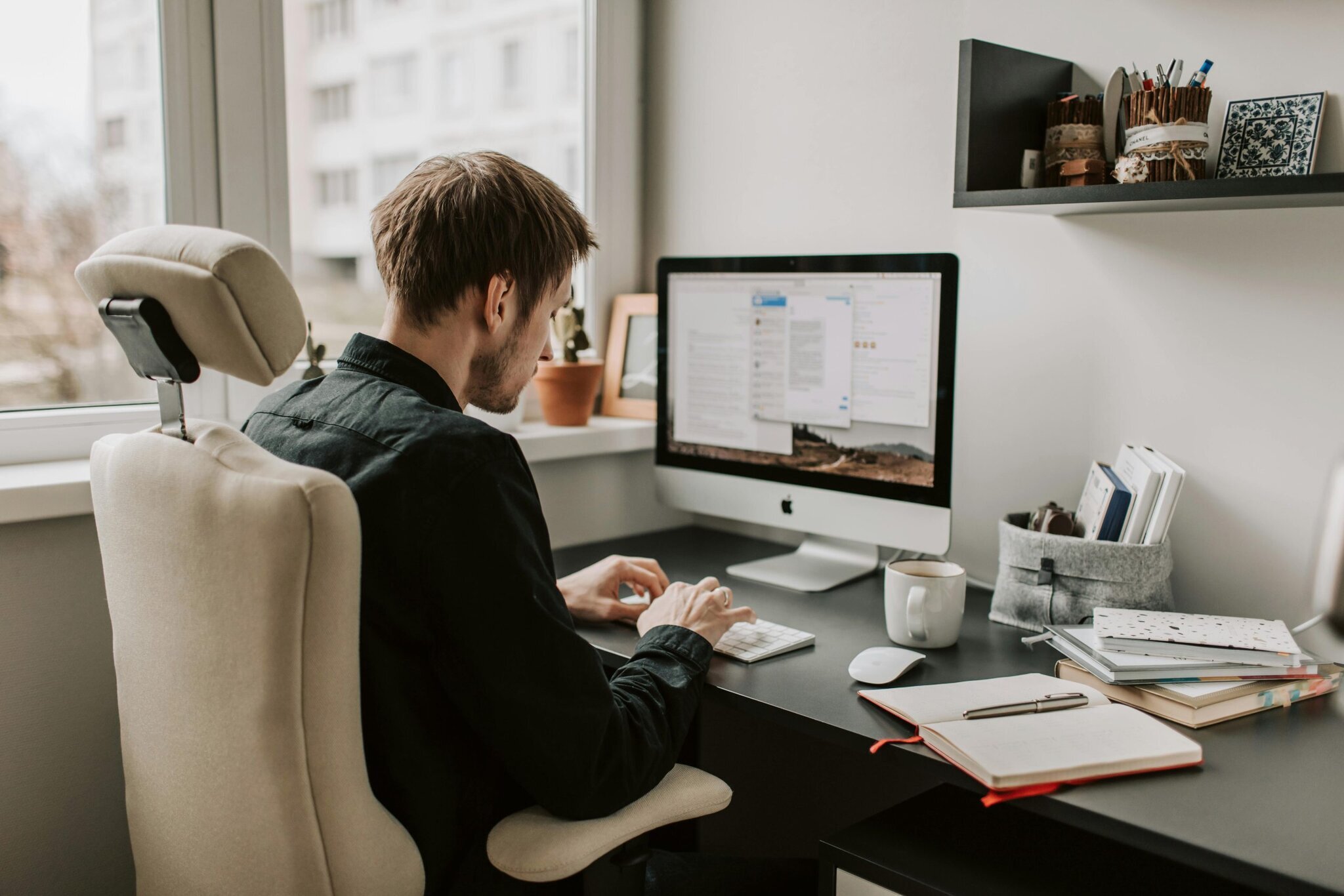 - Prendre en compte comment utiliser un ordinateur ou un smartphone, de manière à ce qu’ils soient à la hauteur des yeux et que le champ de vision se situe au milieu de l’écran, pour éviter de plier le cou pour regarder.